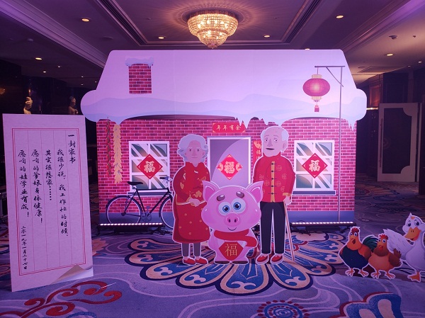 迎春团拜会现场暖意融融、喜气洋洋,鱼贯而入的入场环节,用心创意比比皆是,体现出中智人无处不在的创新情结。“入场发放红围巾”,围出了一年业绩红似火;“十二生肖签到台”,写满了并肩奋斗力量大;“小智在现场”现场采访了各分支机构主要负责人,共同祝福祖国成立70周年;“一封家书创意墙”,引出了传统佳节思乡情。回首2018年,我们有坚实的脚步、辉煌的业绩,我们有丰硕的成果、锦绣的未来。成绩的取得离不开领导班子的高瞻远瞩,公司的发展离不开全体员工的戮力同心。